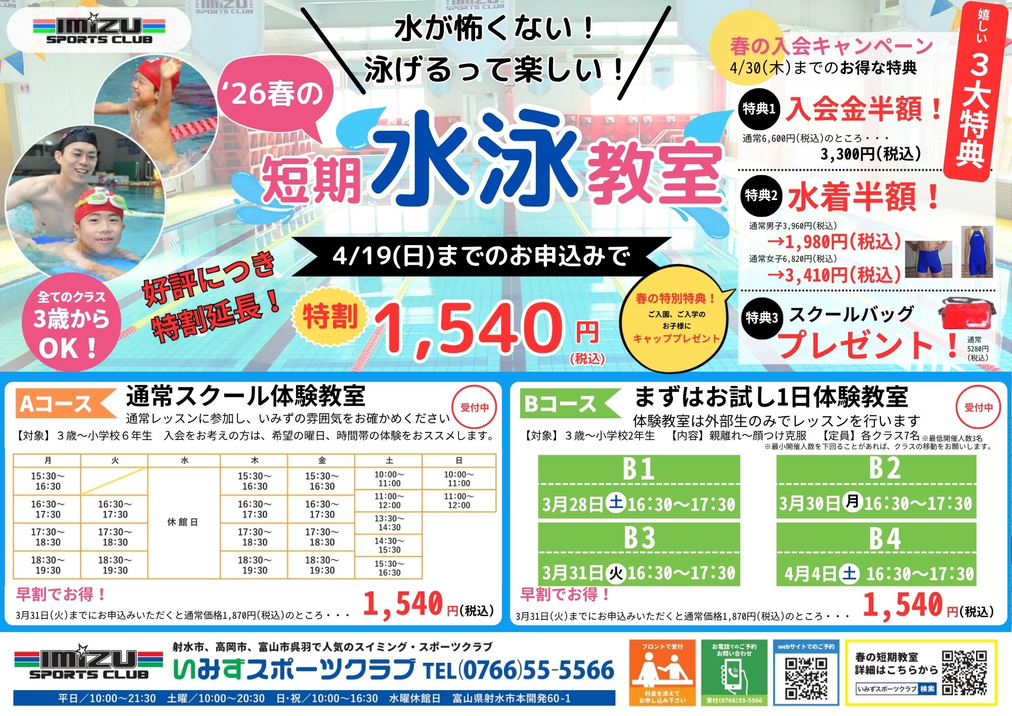 ★4/19(日)まで体験のお申込をいただくと、体験料がお安くなります★